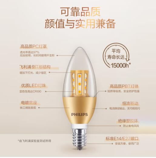 e14螺口led灯泡三色变光超亮蜡烛灯泡拉尾水晶小螺口吊灯家用节能 三色变光【6.5瓦金底拉泡】12只