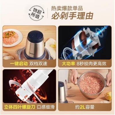 美的绞肉机家用碎肉机切肉机 电动多功能绞馅机搅拌机肉馅机打蒜器婴儿辅食机